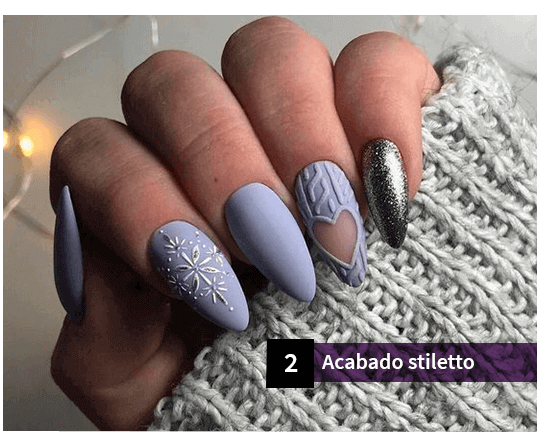 Forma alargada con terminación en pico. Crea un efecto de garra por lo que tus dedos se ven estilizados y muy elegantes. Este tipo de uña está en tendencia, aunque son algo incómodas para las labores cotidianas.